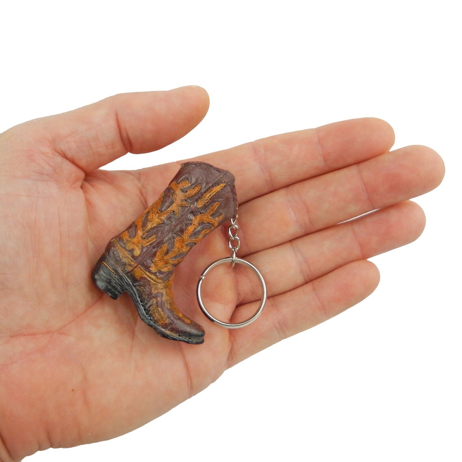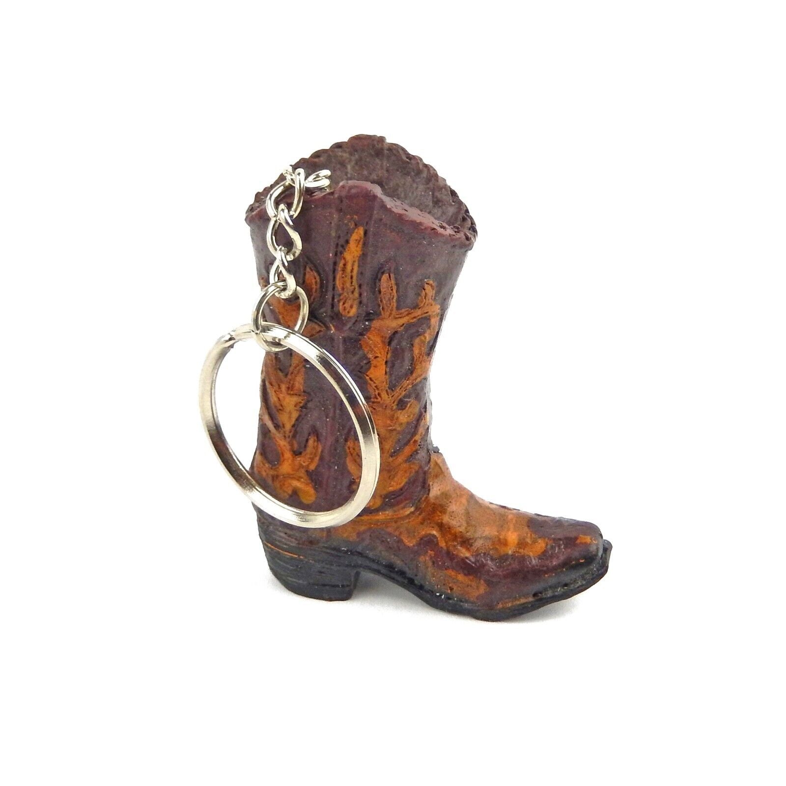 Tiny Cowboy Boot Keychain Key Ring Hand Painted Western Style Brown #08170-6