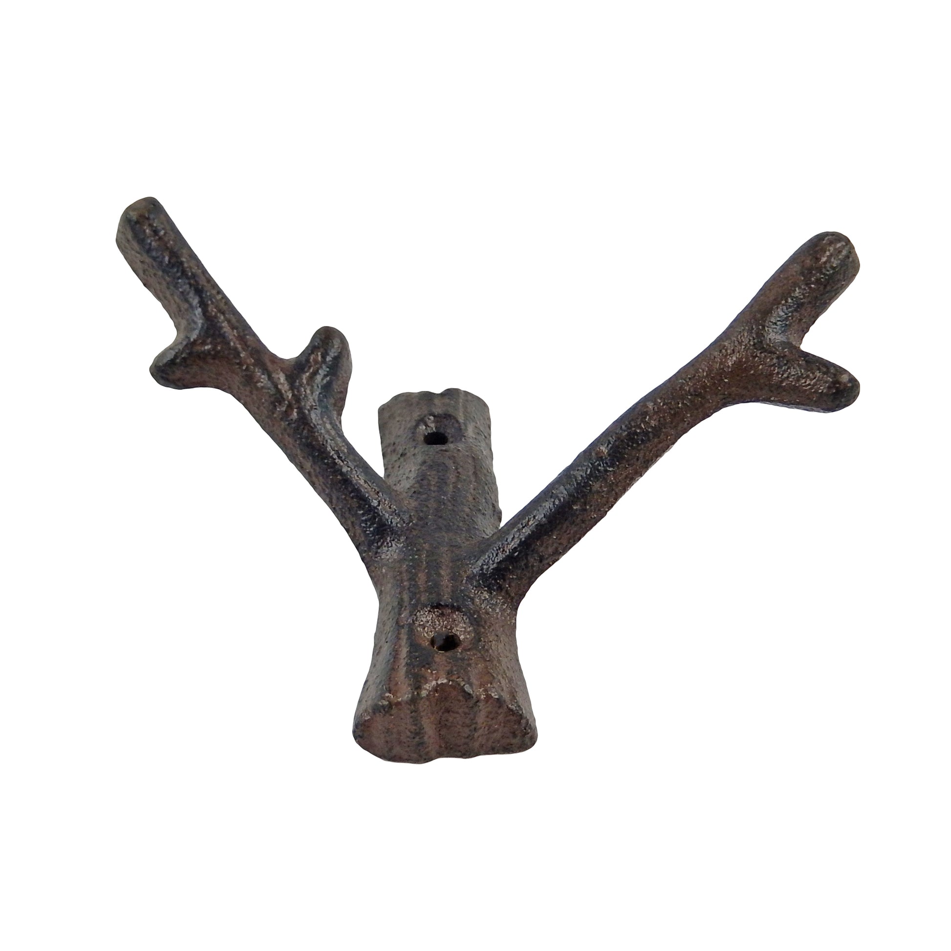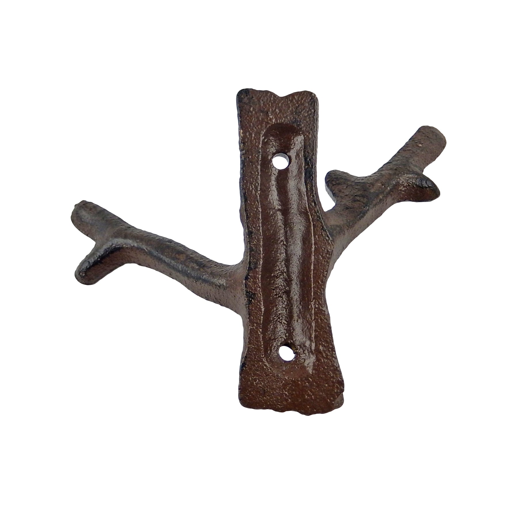 Tree Branch Double Wall Hook Cast Iron Towel Coat Hat Hanger Rustic Brown