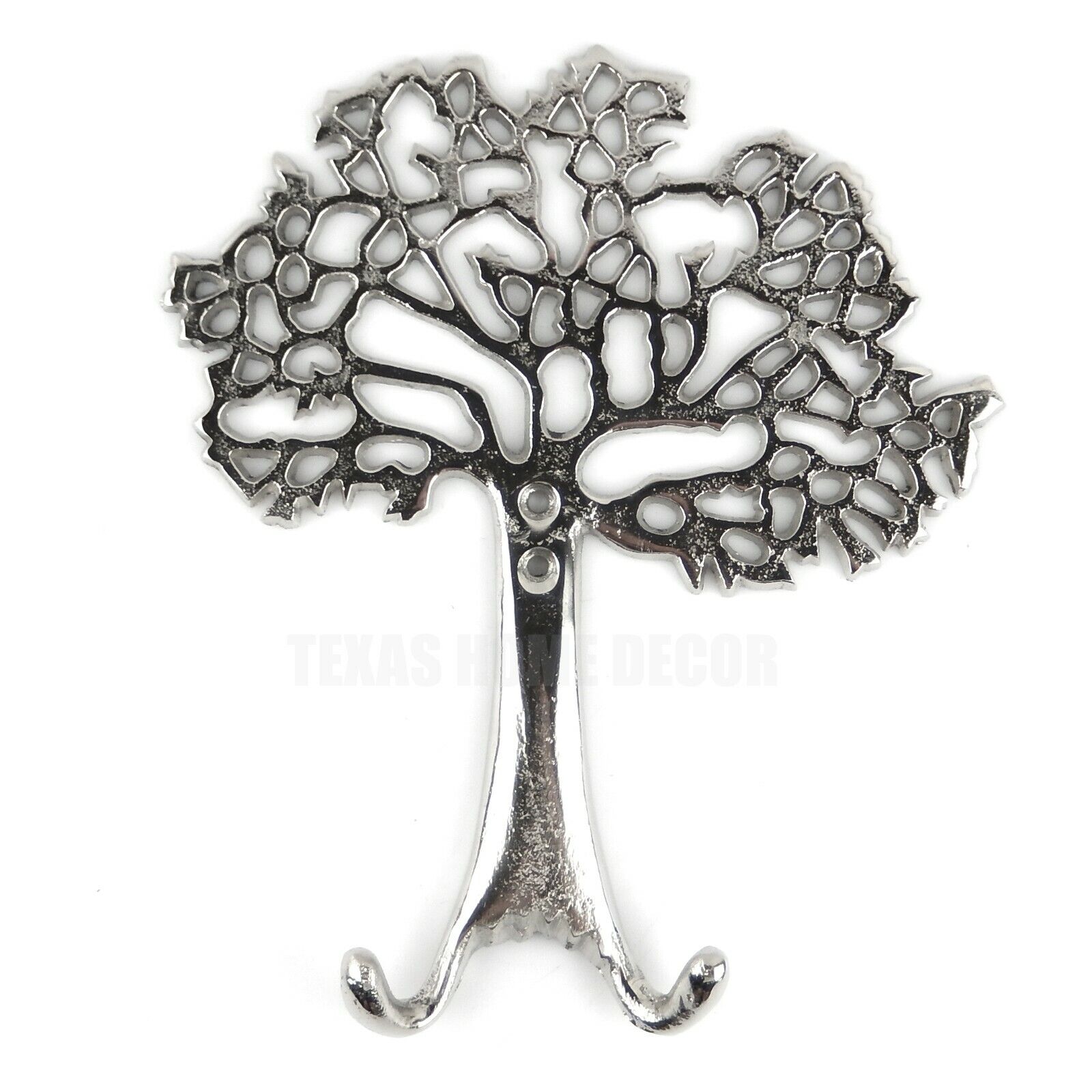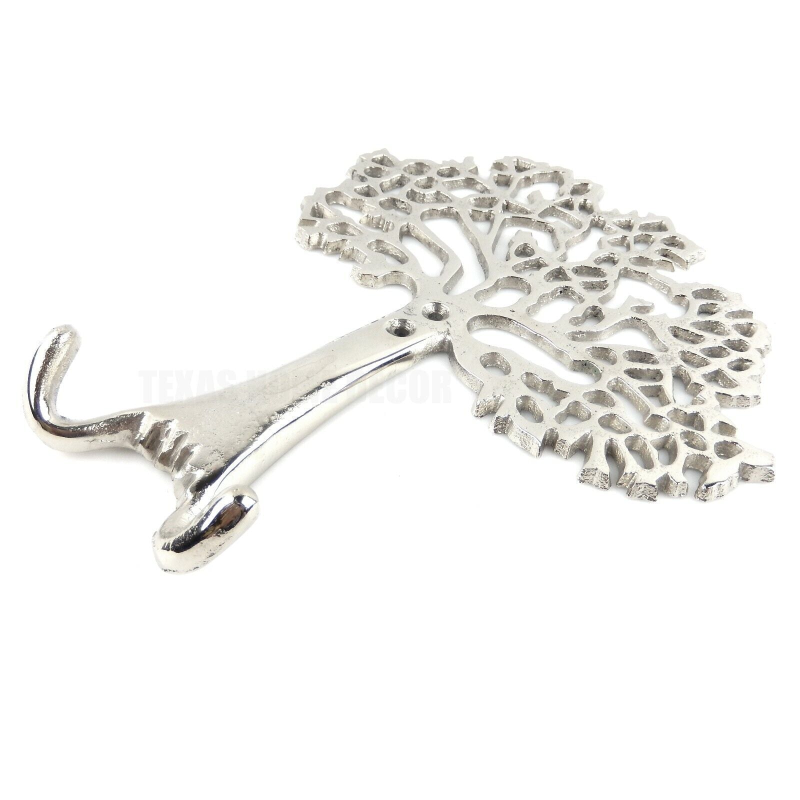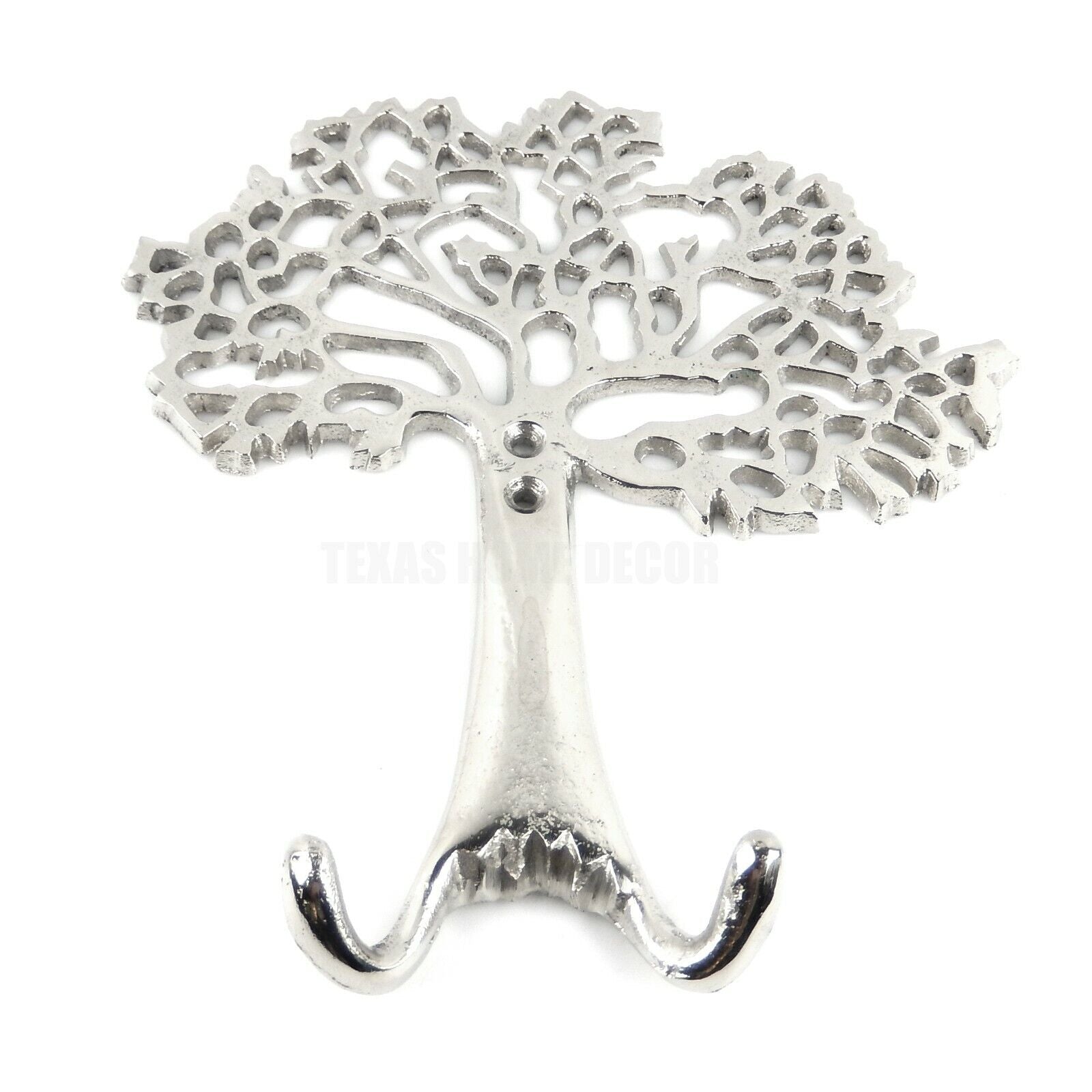 Tree of Life Wall Hook Plaque Coat Rack Key Towel Hanger Silver Polished 10 1/2"