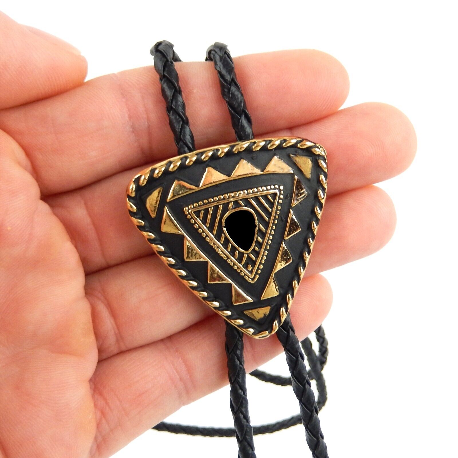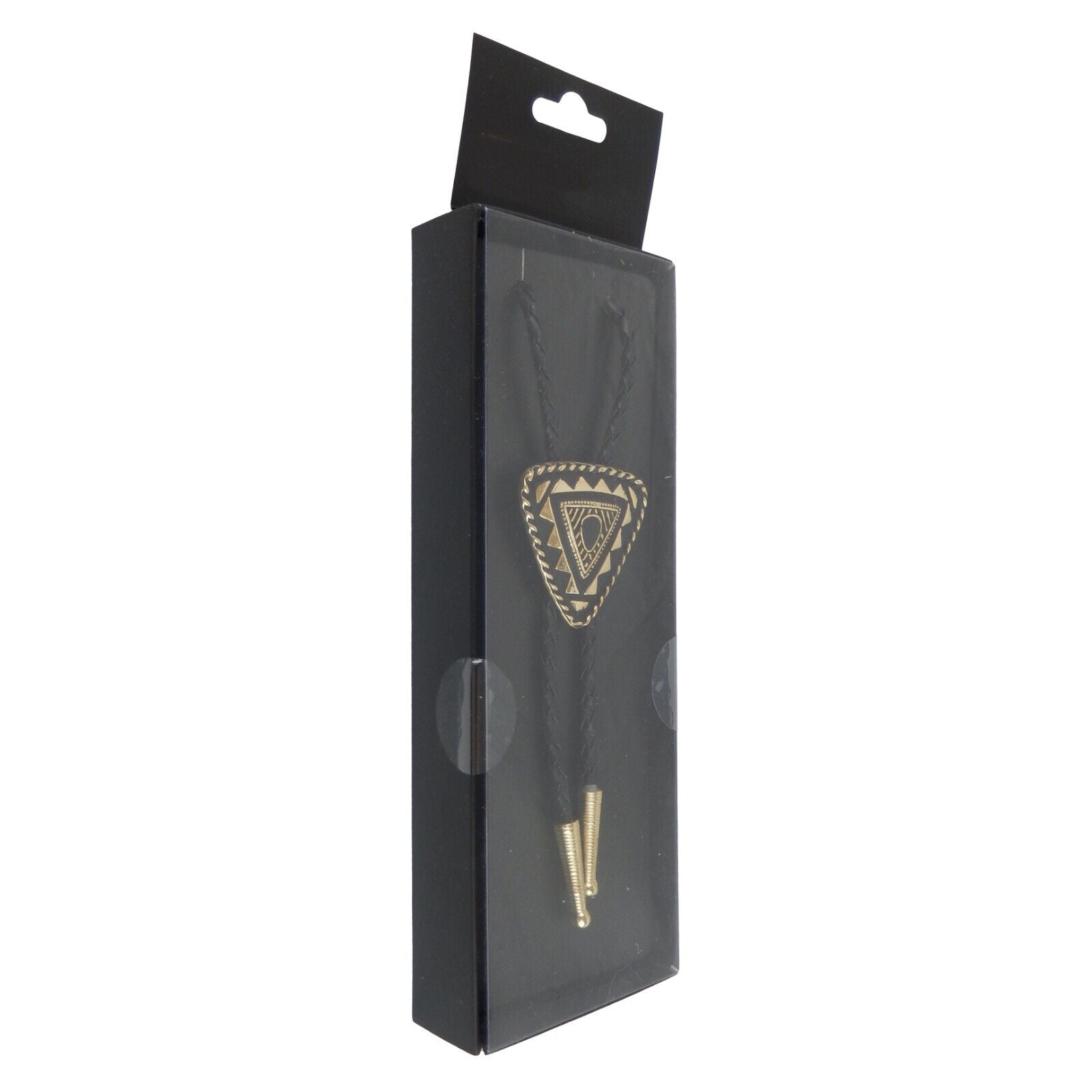 Triangular Real Gold Plated Bolo Tie 36 inch Adjustable Braided Cord Made In USA
