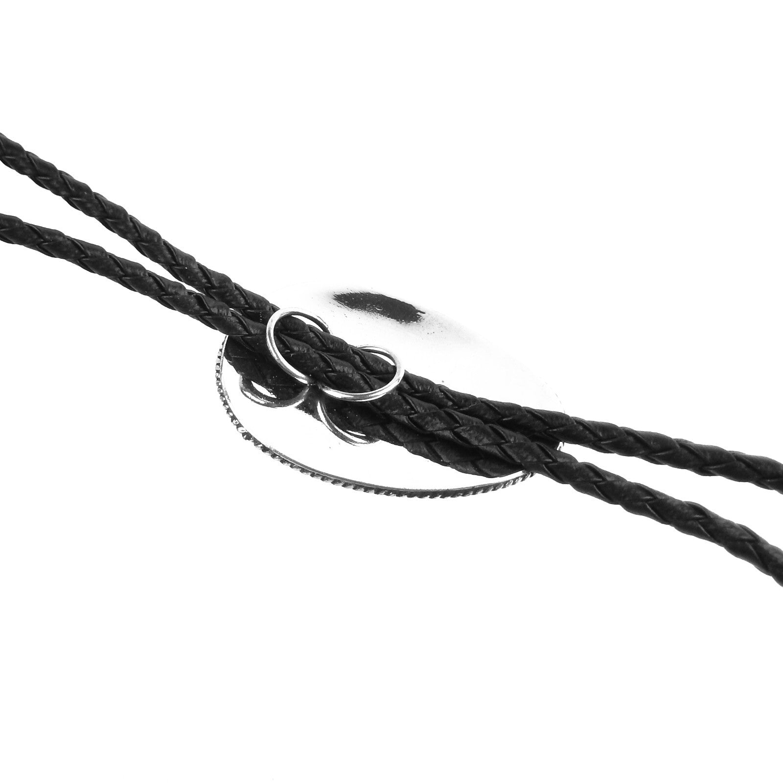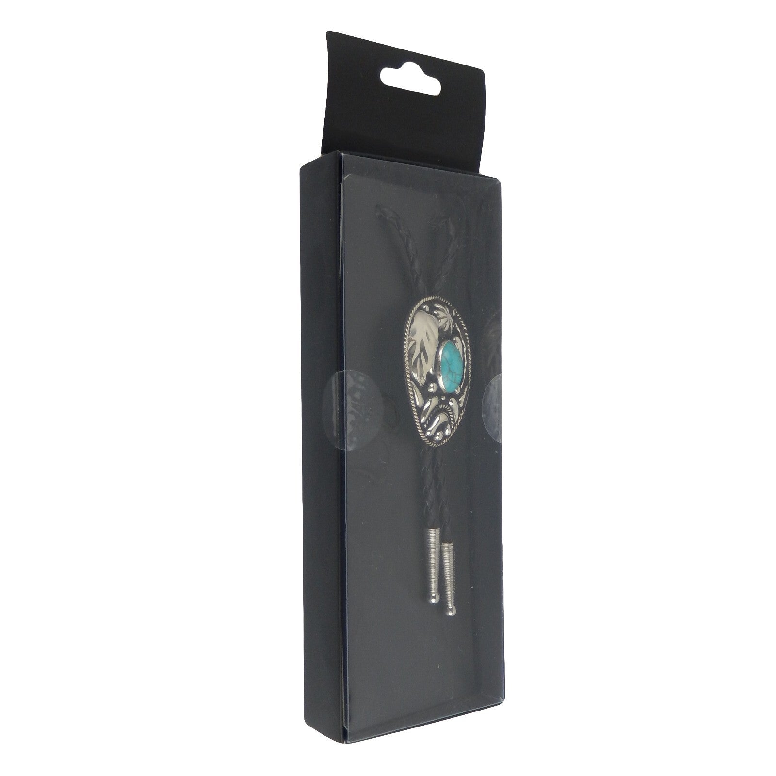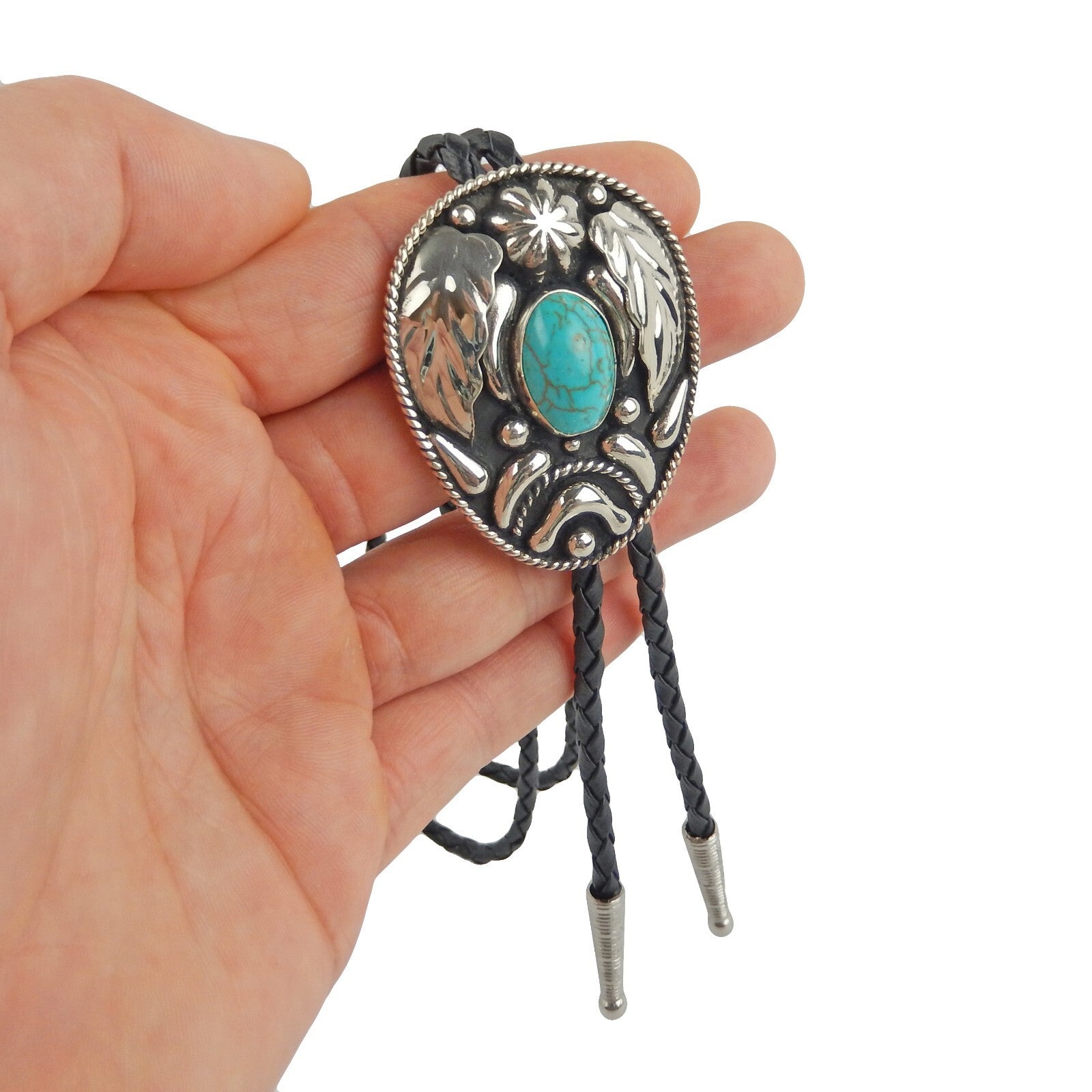 Turquoise Stone Floral Bolo Tie German Silver 36 inch Black Cord Made in USA