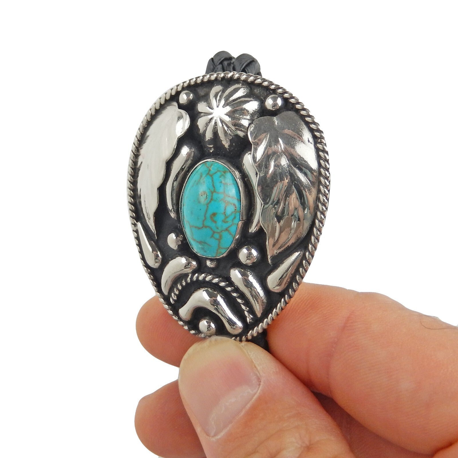 Turquoise Stone Floral Bolo Tie German Silver #BT-214