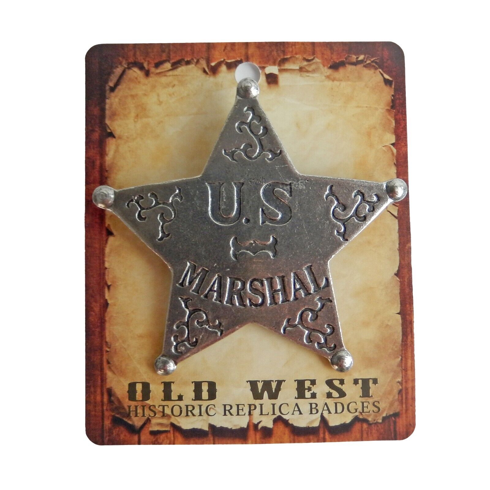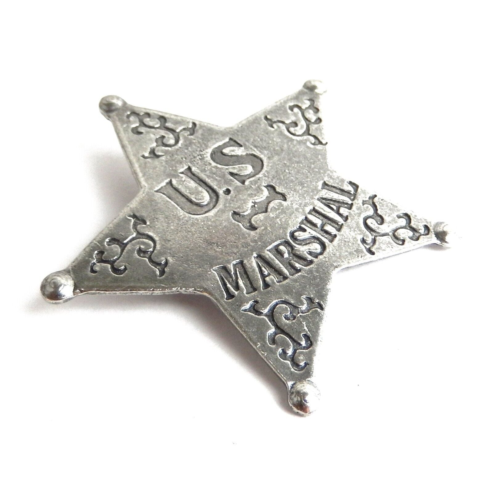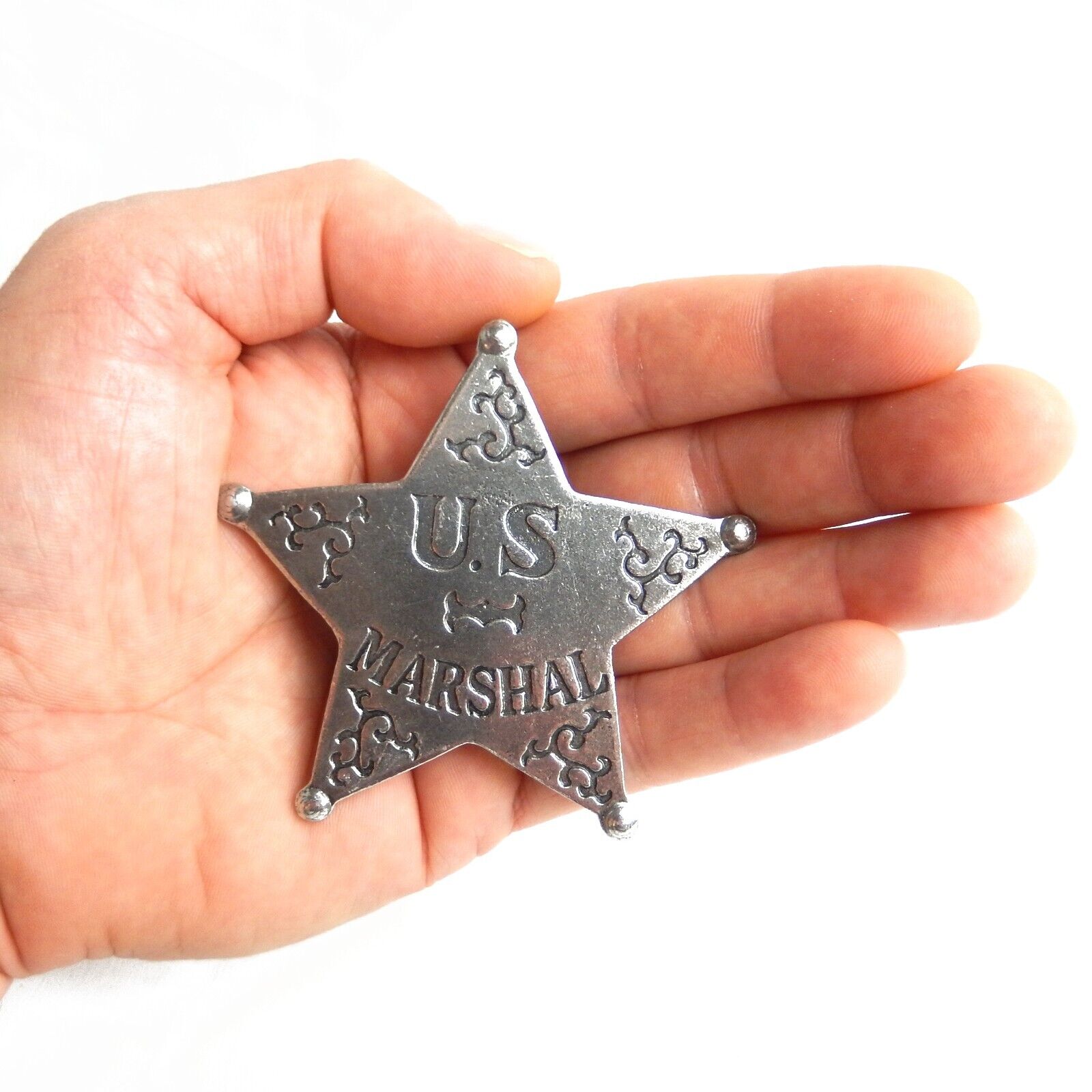US Marshal Badge Old West Replica Antique Silver 5 Pointed Star Made in USA