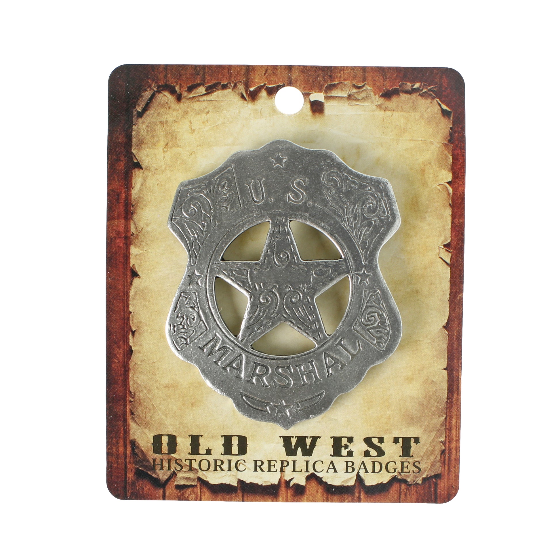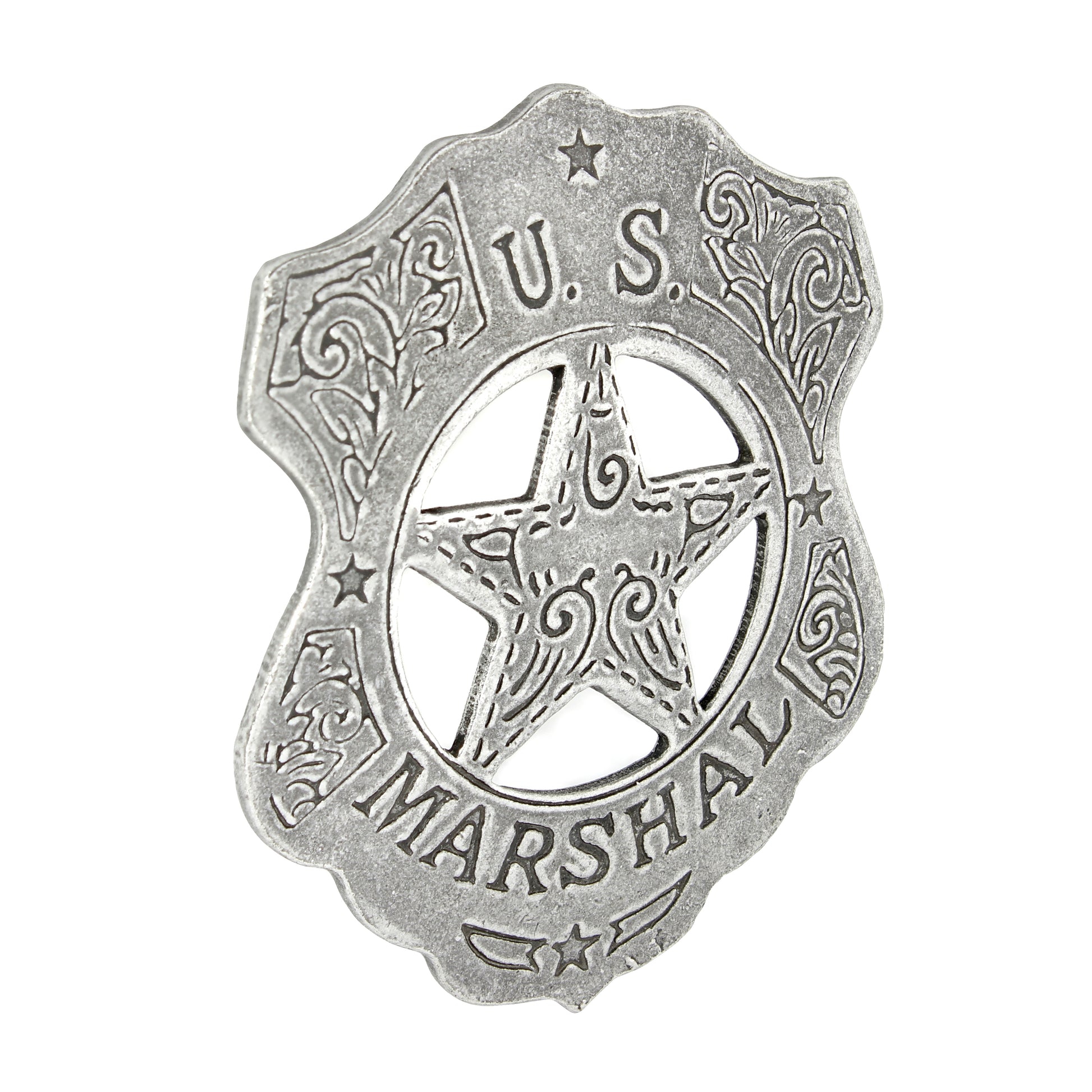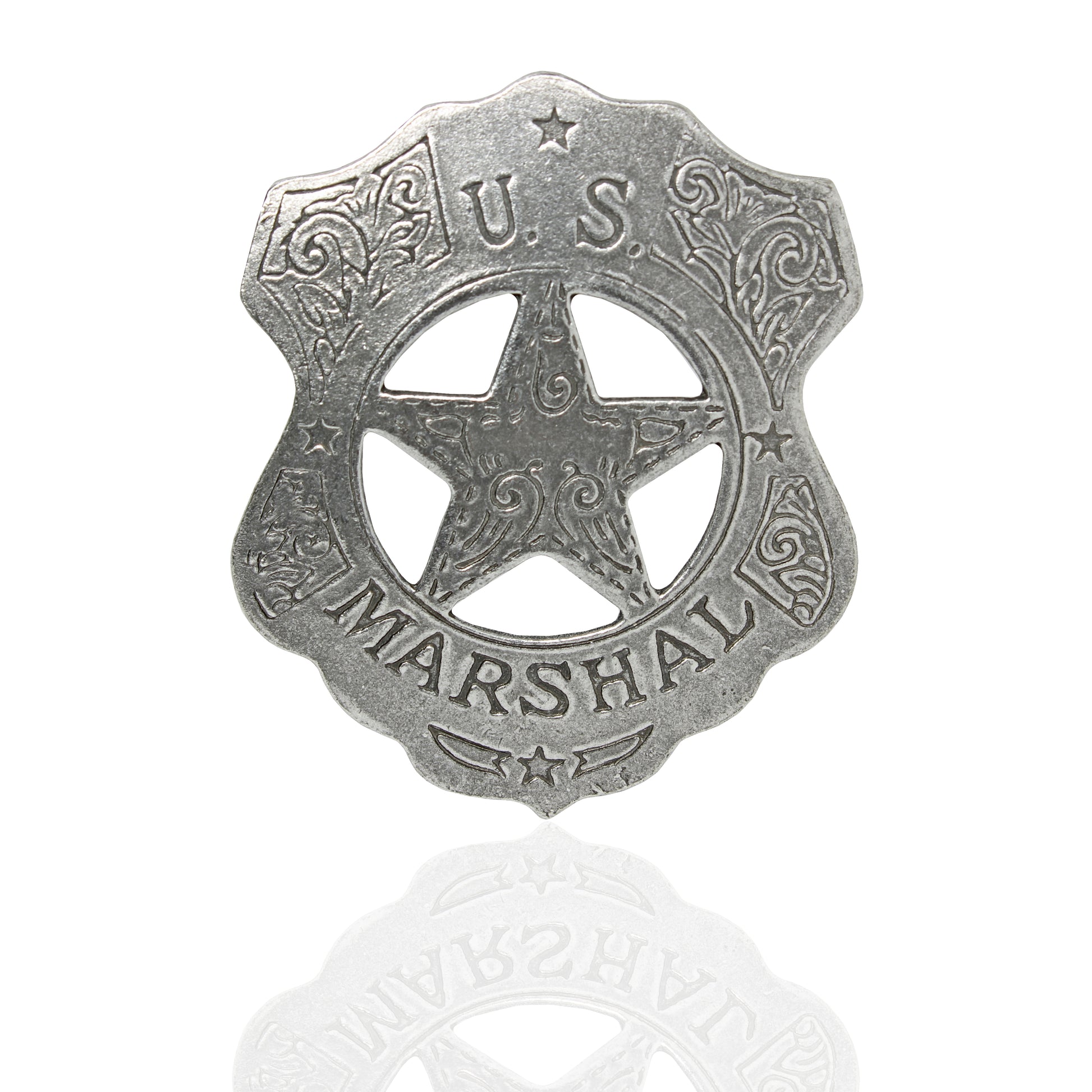 US Marshal Shield Floral Badge Star Old West Replica Antique Silver Made in USA