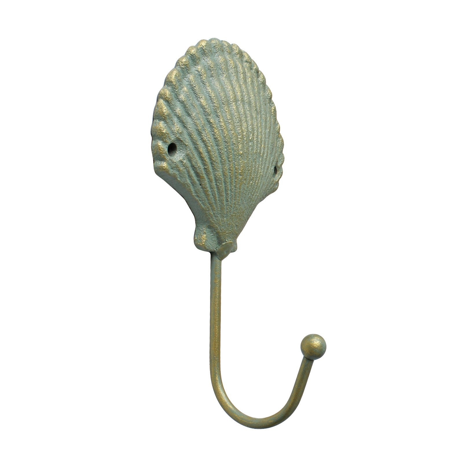 Verdigris Cast Iron Flat Scallop Shell Wall Hook Nautical Key Towel Coat Hanger