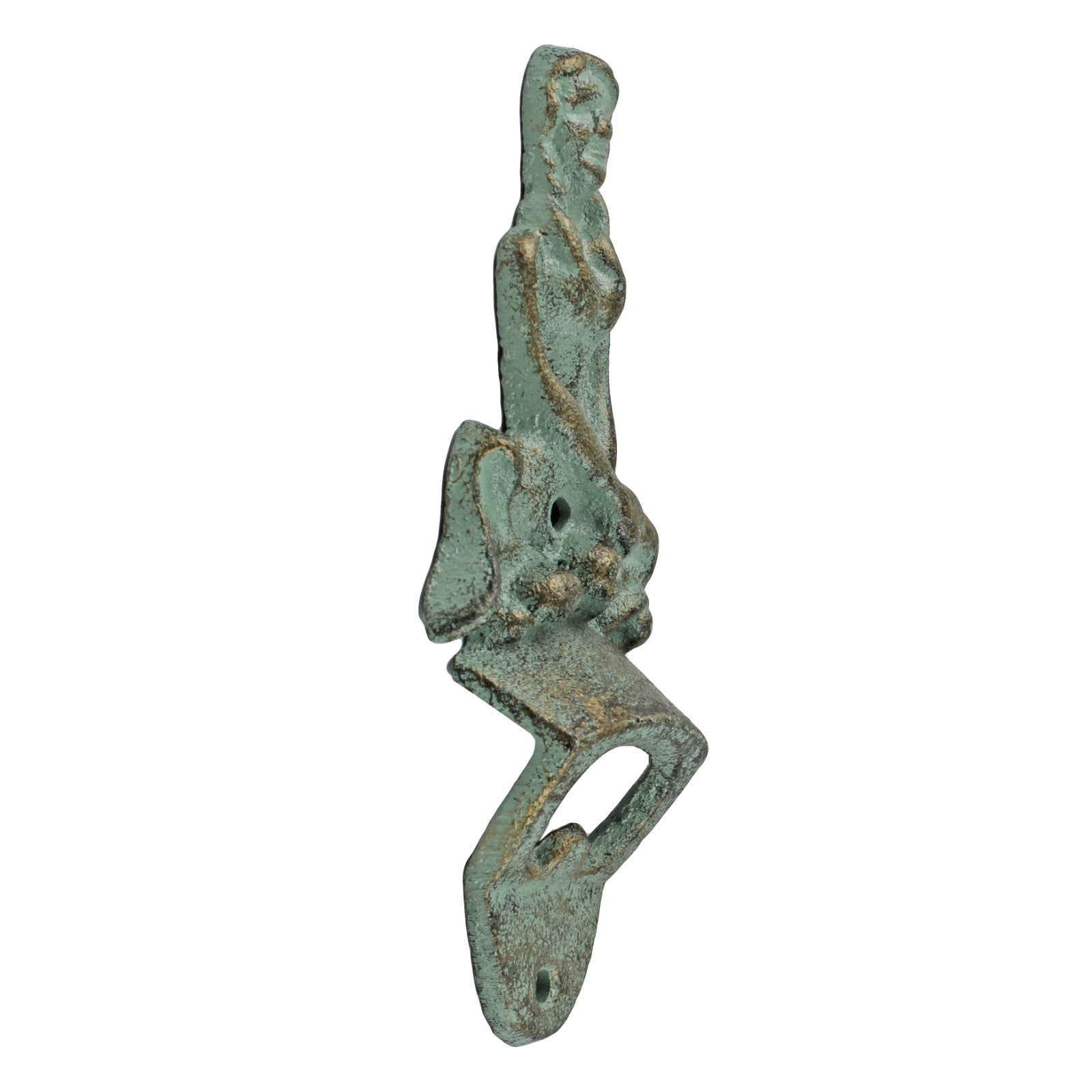Verdigris Cast Iron Mermaid Beer Bottle Opener Wall Mounted Nautical Bar Decor