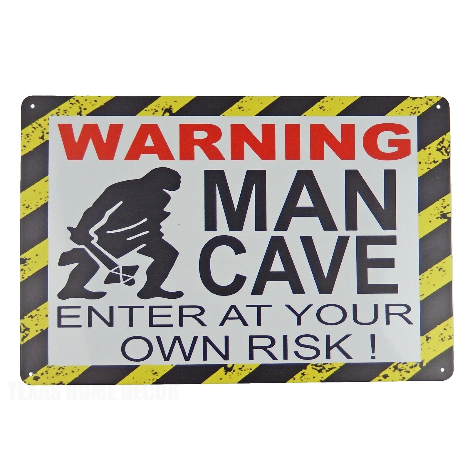 Warning Man Cave Enter at Your Own Risk! Tin Metal Sign Garage Bar 11 3/4 in