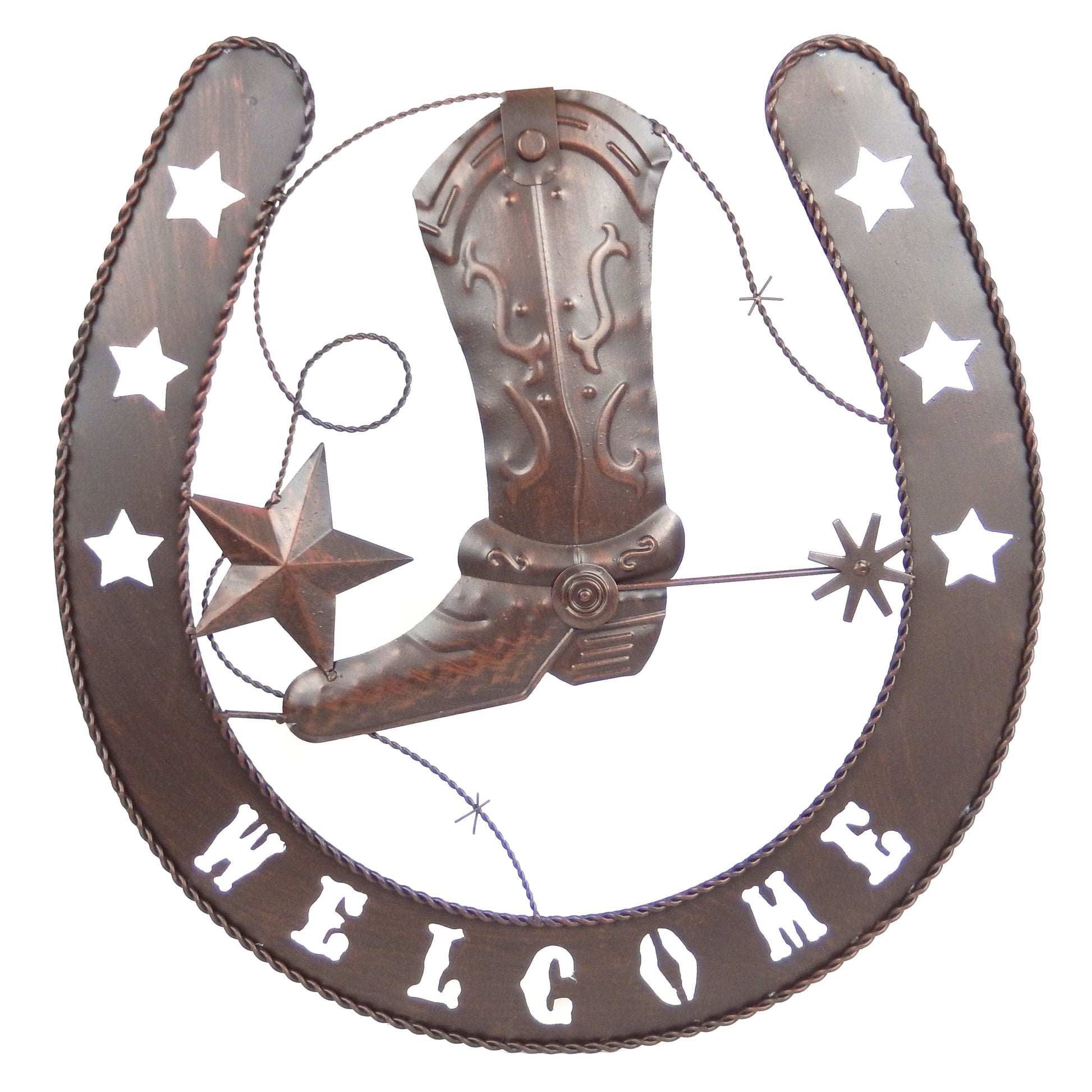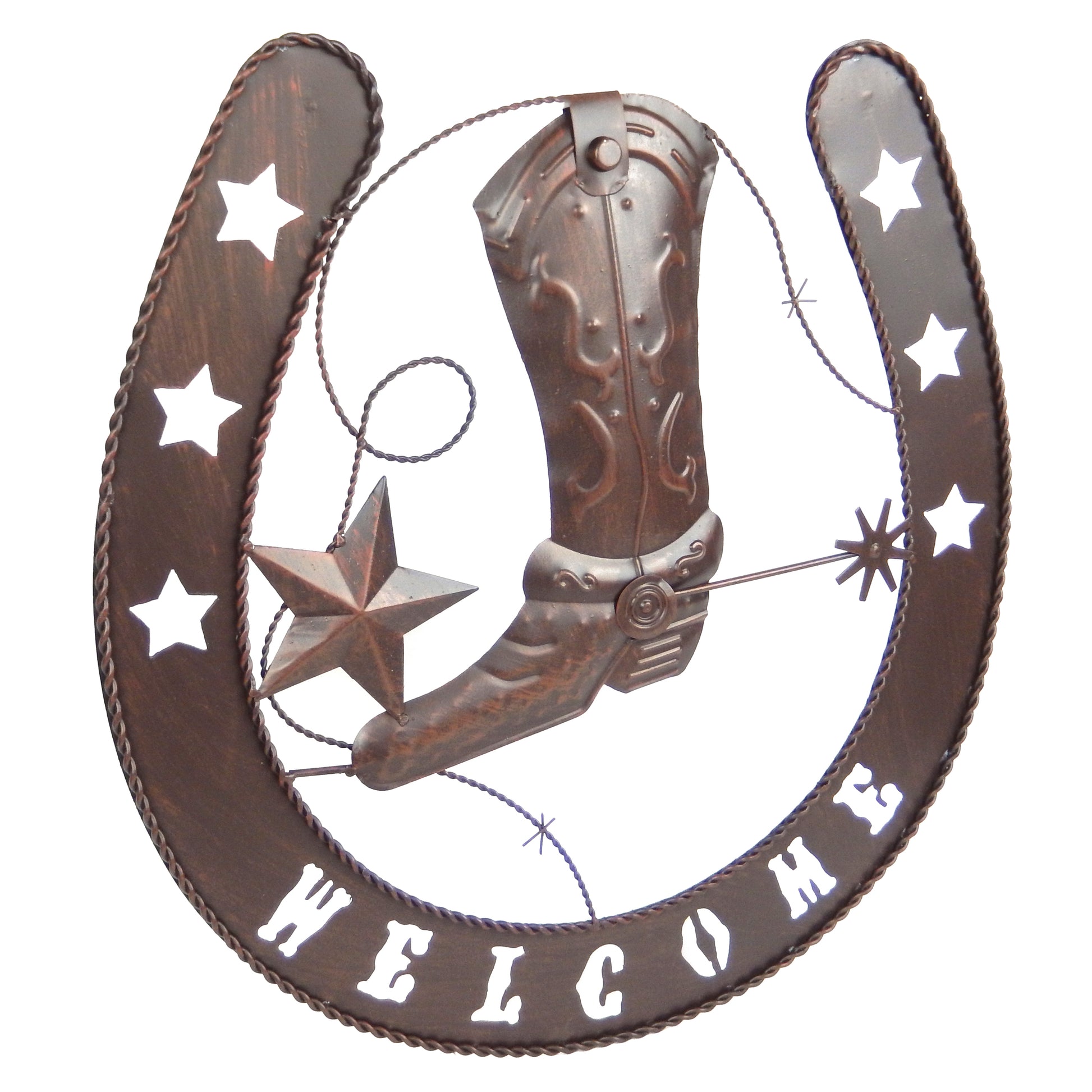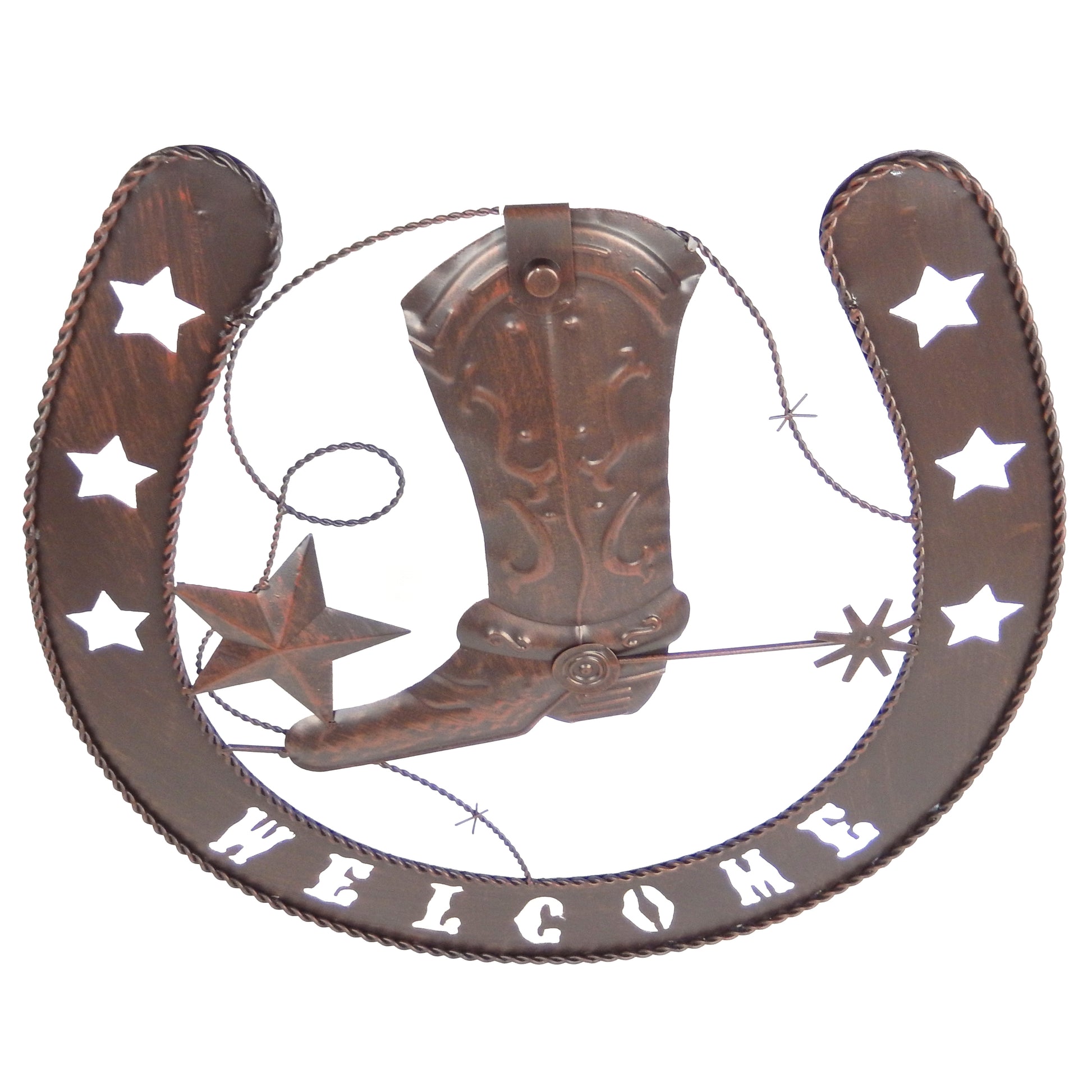 Metal Horseshoe Welcome Wall Decor Boots Spur Stars Rustic Country Western 20 in