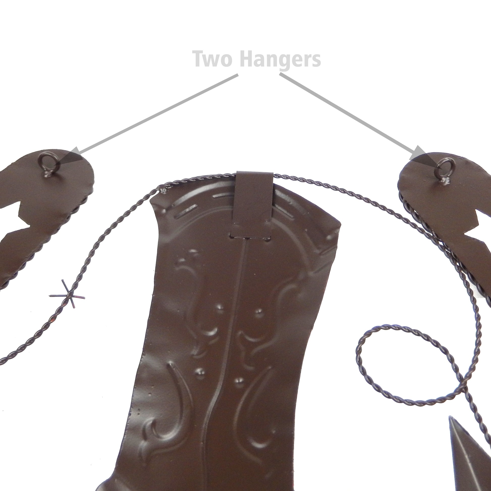 - The back has two metal hangers