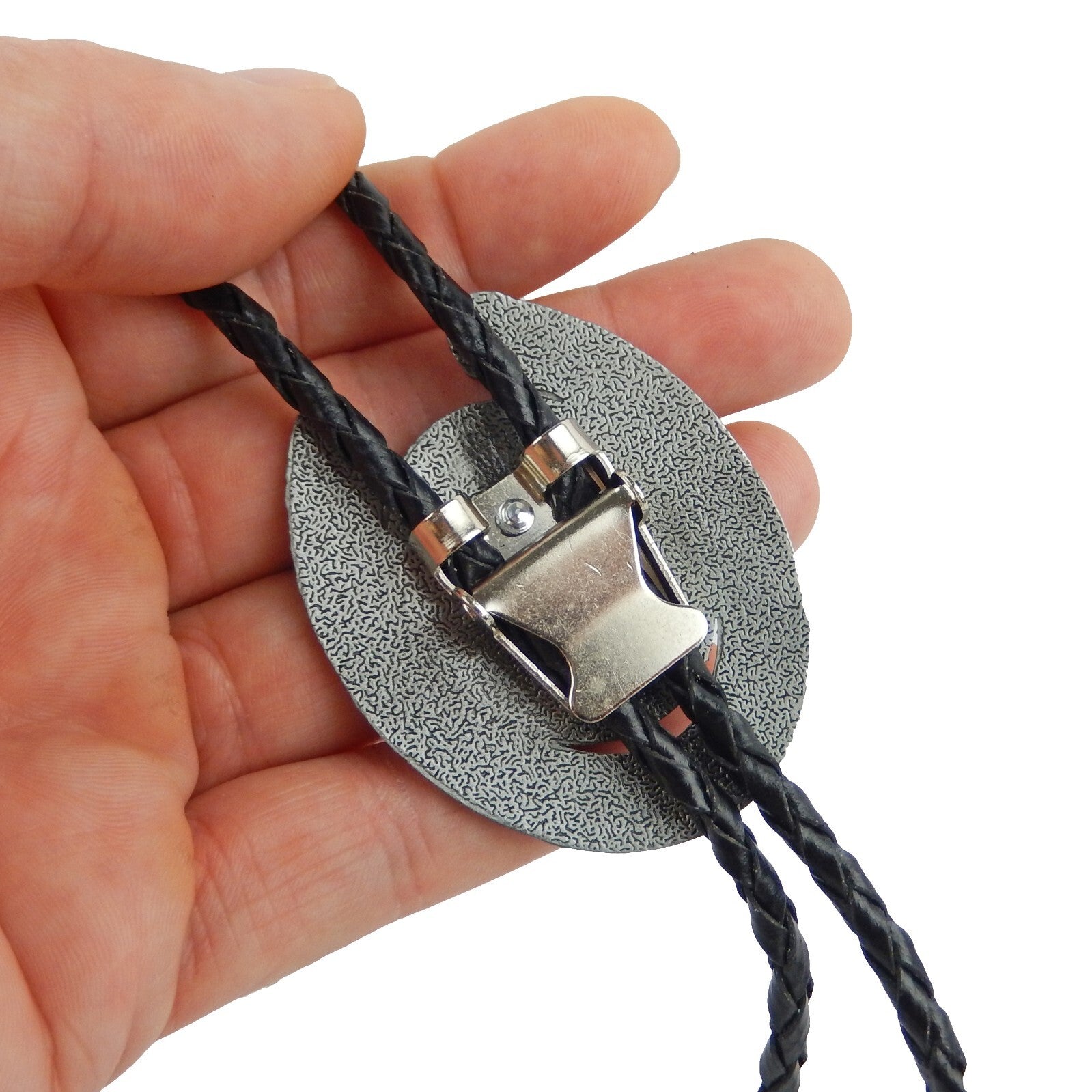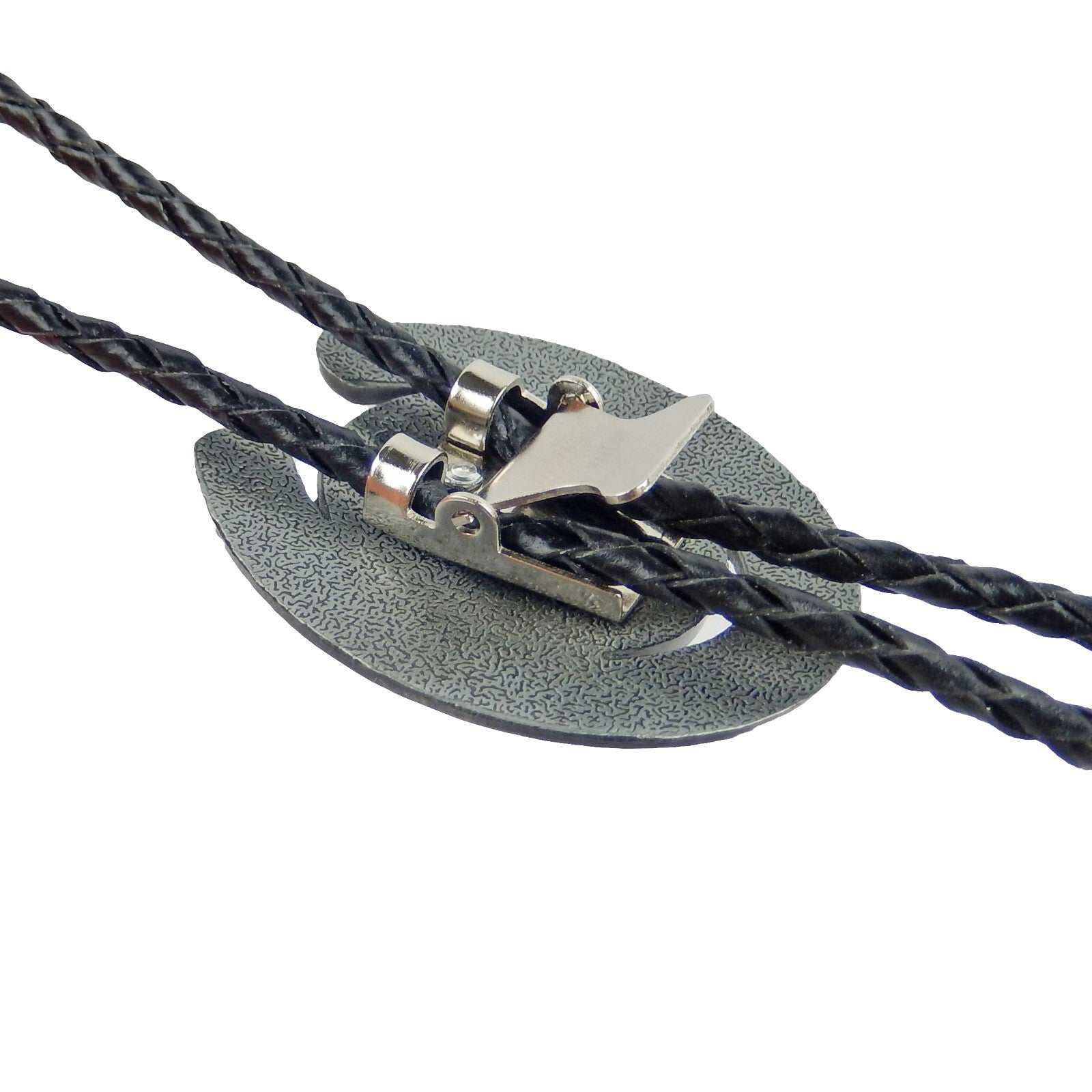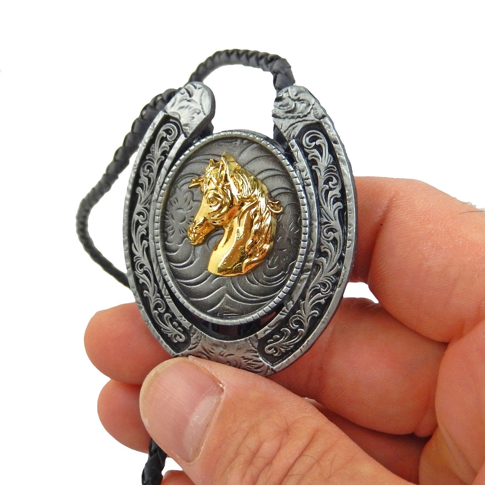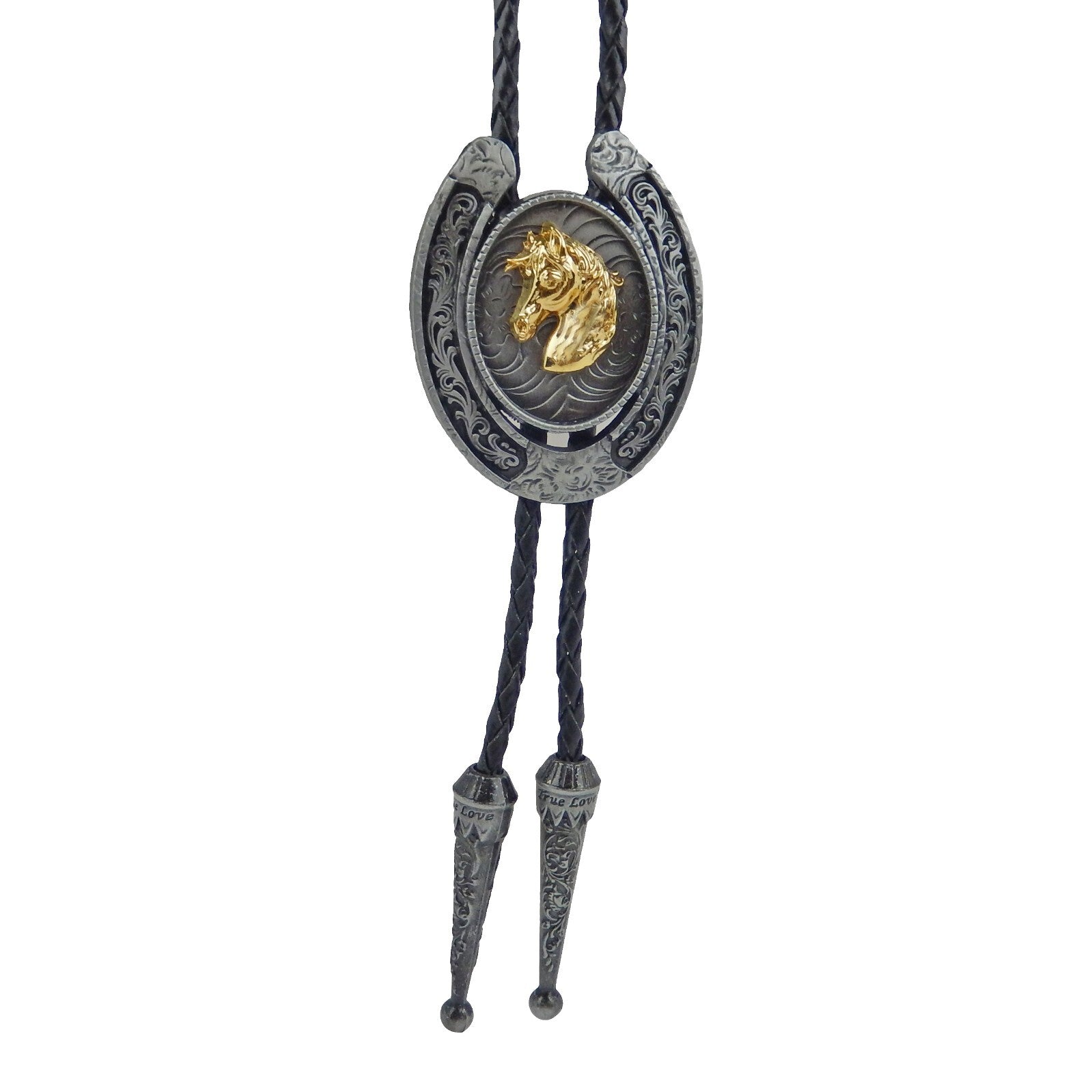 Western Floral Horseshoe Horse Head Bolo Tie 40 inch Black Cord Antique Silver