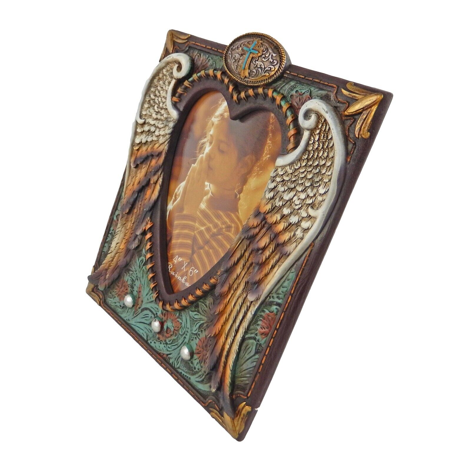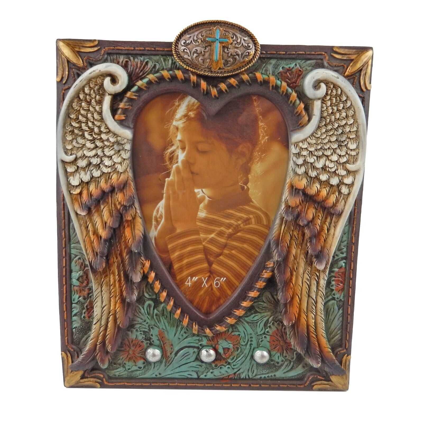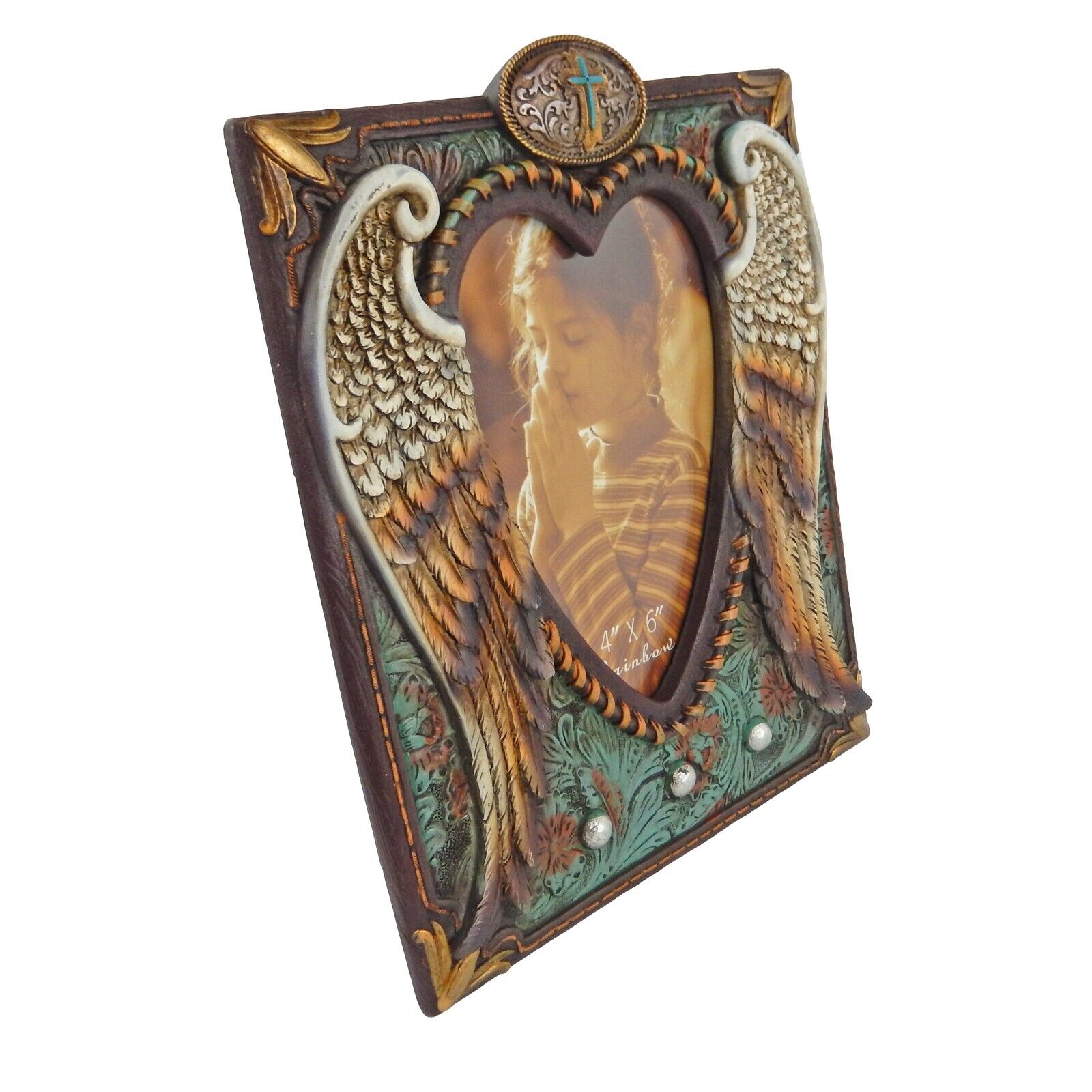 Western Heart Shaped Angel Wings Floral 4 x 6 inch Picture Photo Frame Turquoise #43858