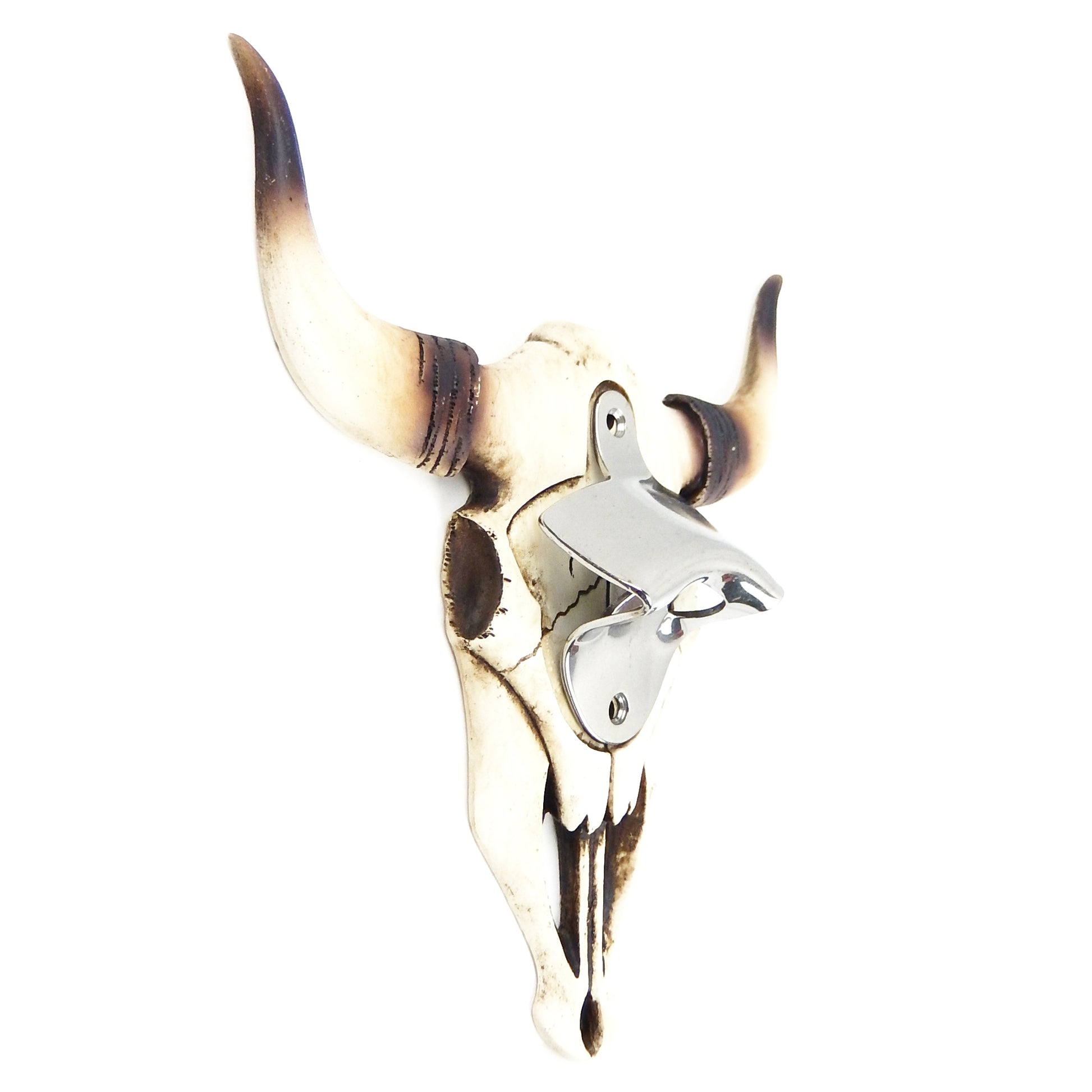 Western Longhorn Steer Skull Beer Soda Bottle Opener Wall Mounted With Screws